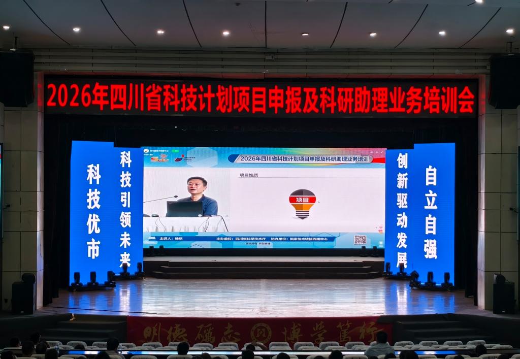 培训会上,各学院科研管理相关工作人员以及拟申报2026年度四川省科技厅各类计划项目的负责人与主要成员准时参会,认真聆听培训内容。本次培训围绕项目申报全流程、经费预算编制规范、科研助理配备与管理等关键环节展开系统解读与实操指导,为申报人员提供了清晰的政策依据和实用的方法指引。会议组织有序,各学院积极响应,相关人员踊跃参加,全程保持良好会场秩序,展现出严谨认真的科研态度与学习热情。