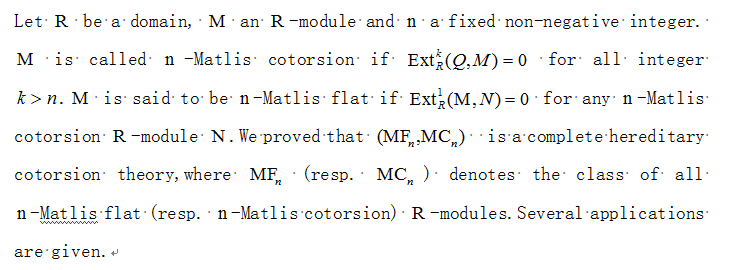 讲座(n-Matlis cotorsion modules and n-Matlisdomains)
