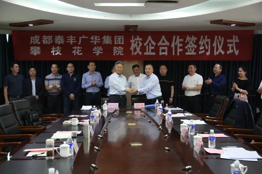 3月18日,成都泰丰广华企业有限公司、攀枝花学院校企合作签订仪式在办公楼三楼会议室举行成都泰丰广华企业管理集团有限公司董事长王干文、总裁梁伟、副总裁付汉新、副总裁李戈及其公司相关负责人校领导王曙光、王兵、张旭辉党委行政办公室、教务处、科研处招生就业处及钒钛学院相关负责人参加仪式。仪式由副校长王兵主持。