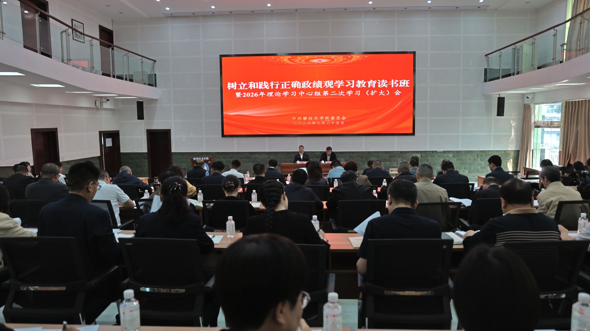 3月25日,我校在博雅厅举办树立和践行正确政绩观学习教育读书班暨2026年理论学习中心组第二次学习(扩大)会。党委书记胥刚作专题报告,四川师范大学马克思主义学院党委书记胡尚峰应邀作专题辅导,党委副书记刘立新主持会议。全体校领导、中层干部参加学习。